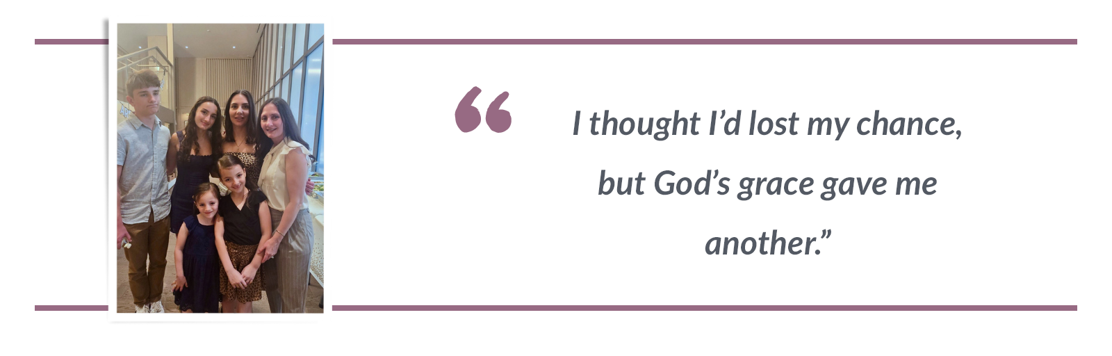 Yet God’s mercy had not let her go. Her parents once again urged her to return to Hoving Home. This time, Crystal came with nothing left to give, except her brokenness. Through one-on-one counseling, chapel, and the love of mentors, she found true healing for her trauma and freedom from addiction.